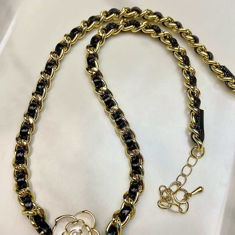 Stainless Steel Zircon 5 Camellia Pendant Necklace NC0050