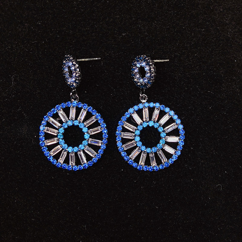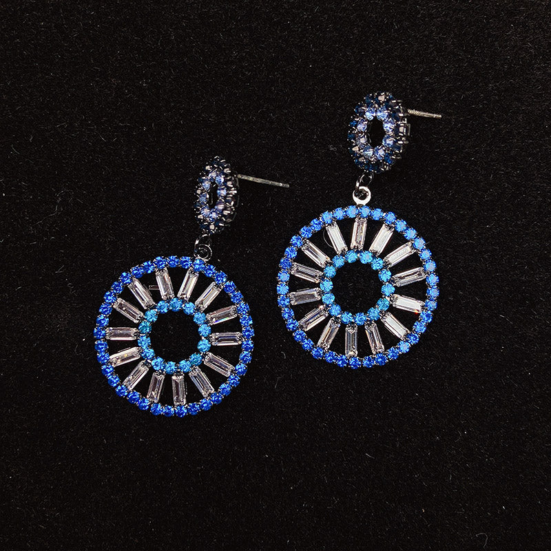 925 Silver-Pin Round Blue Zircon Earrings ED0015