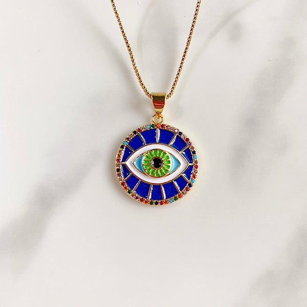 Stainless Steel Evil Eyes Enamel Pendant Zircon Necklace NA0052