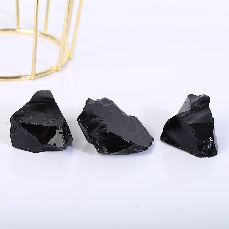 Black obsidian is a deep black stone that when tumbled or sculpted, has a shiny surface. It is very hard and smooth and can have sharp edges in its raw form. It is used in jewellery and home decor for both its intense beauty and its powerful properties.