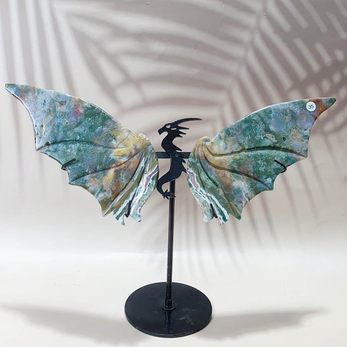 Cluster Agate With Sea Jasper Orange Calcite Crystal Carved Dragon Wings