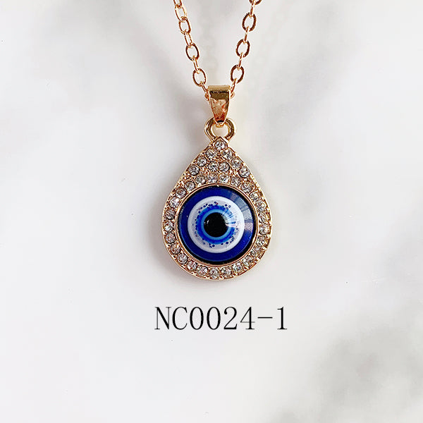 Stainless Steel Evil Eyes Drop Heart Pendant Zircon Necklace NC0024