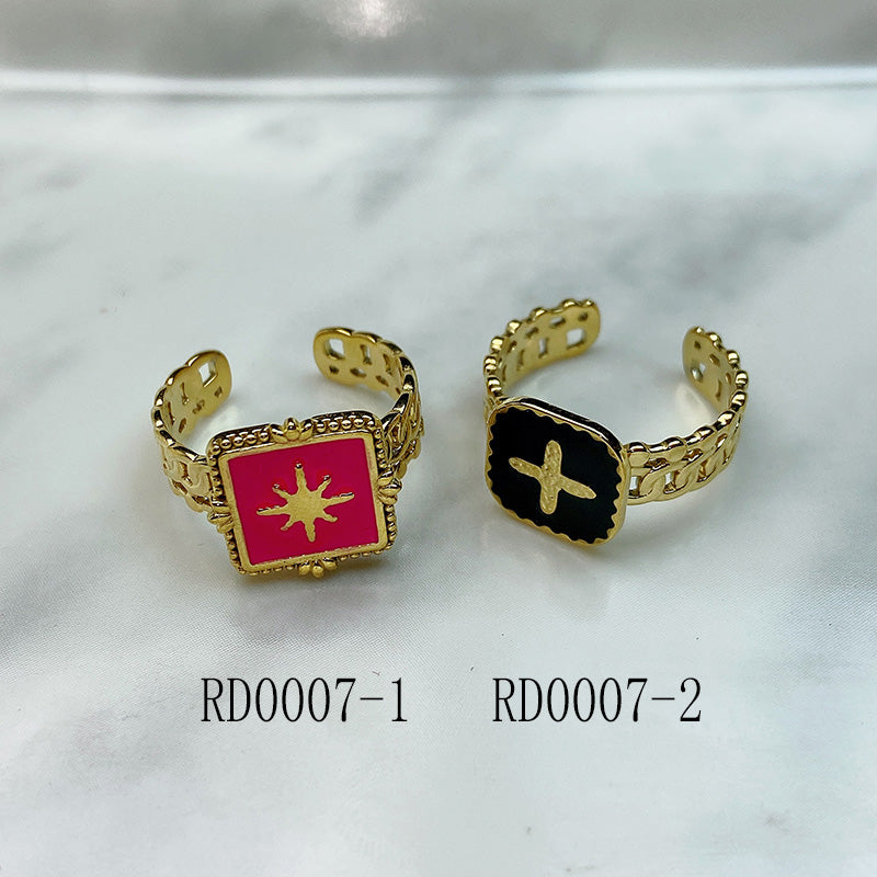 Stainless Steel Star Enamel Opennings Ring RE0007