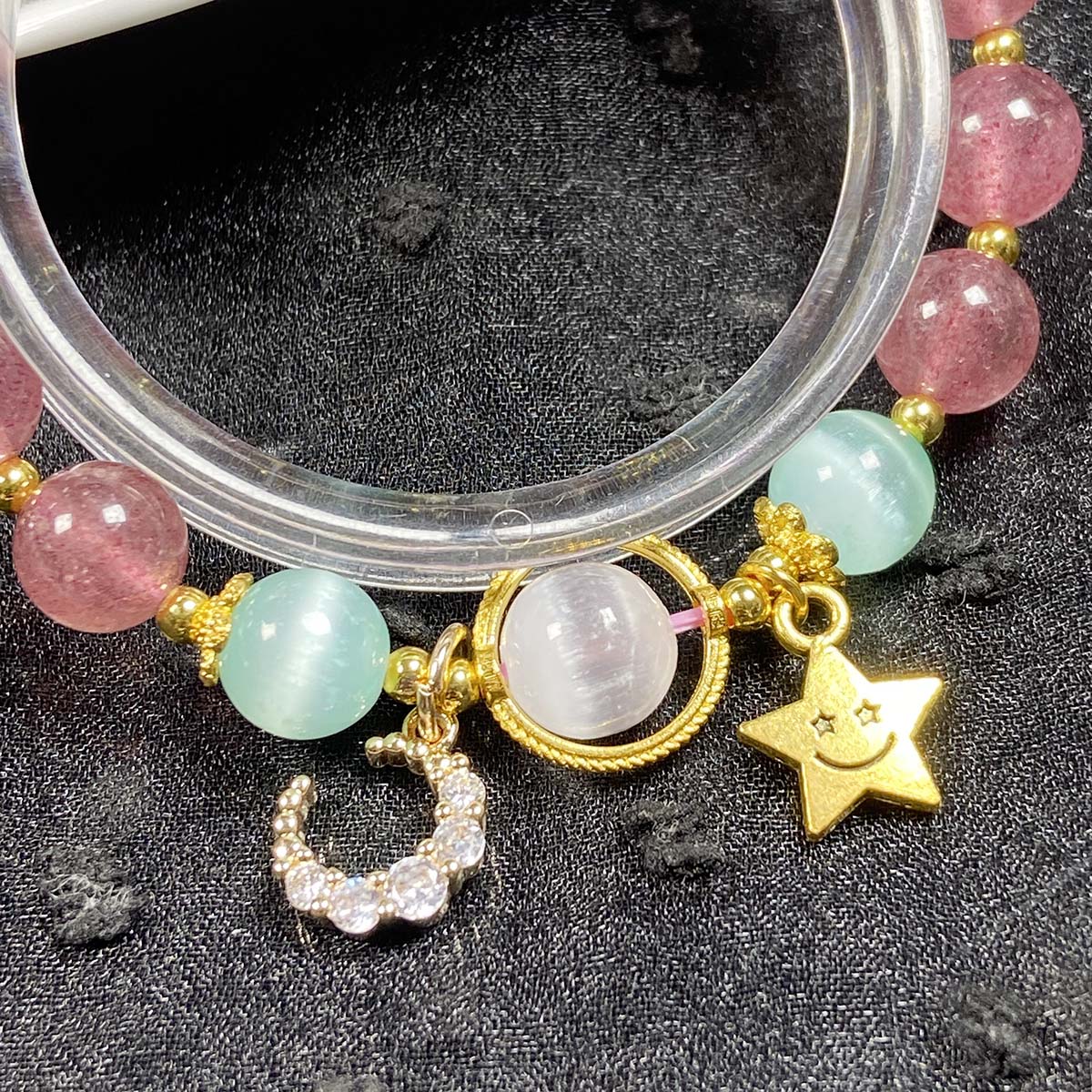 Strawberry Quartz Bracelets 8mm Selenite Bead Moon Star Accessory Bangle Crystal Jewelry
