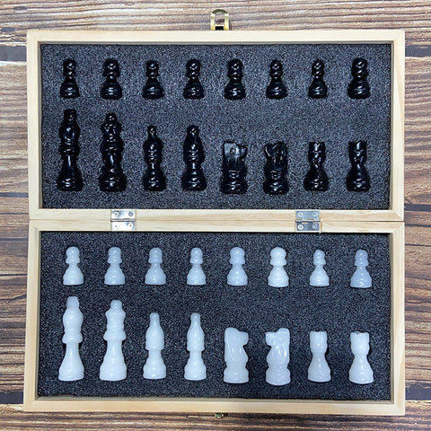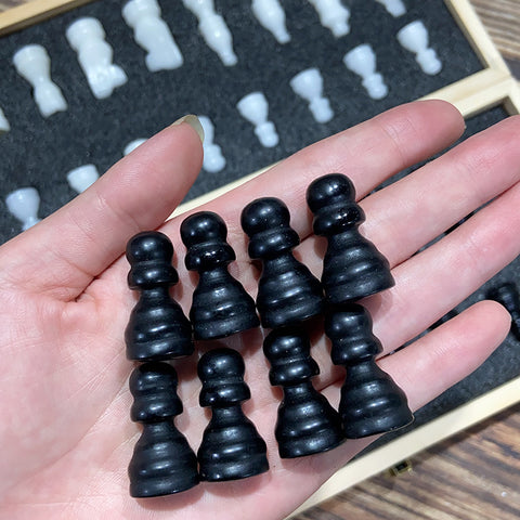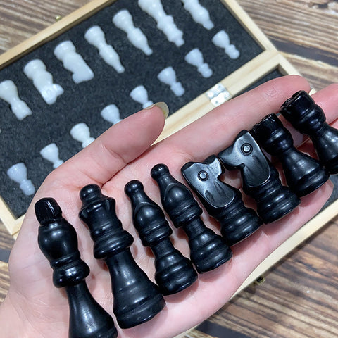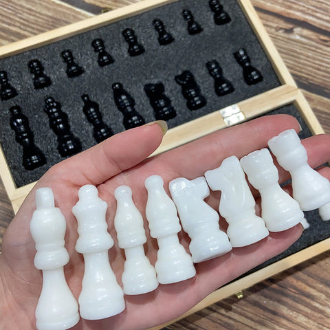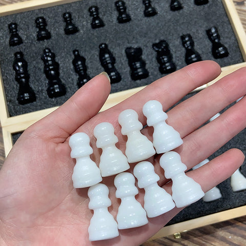 Crystal Chess Set Carvings Obsidian & White Jade