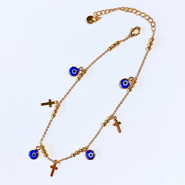 Stainless Steel Blue Evil Eyes Cross Bracelet BC0034