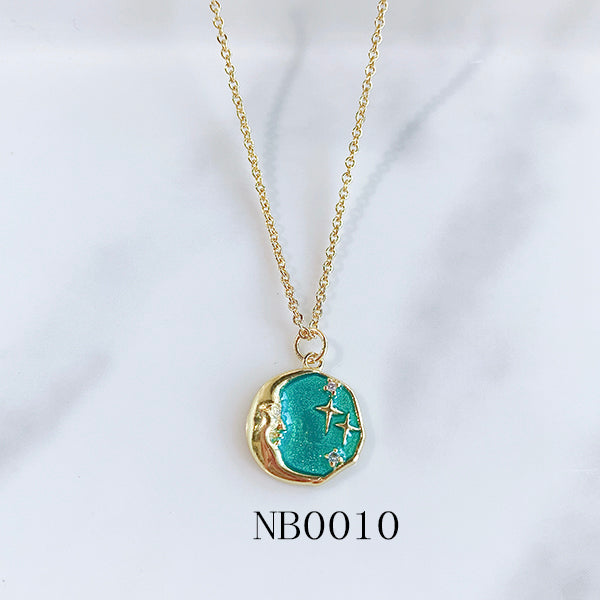 Stainless Steel Star Moon Pendant Enamel Necklace NB0010