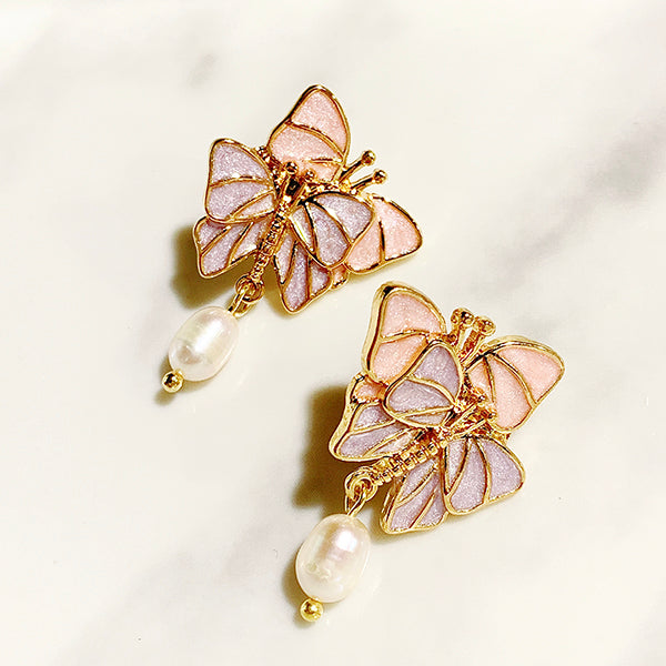 Stainless Steel Butterfly Enamel Imitation Pearl 925 Silver Earring EC0020