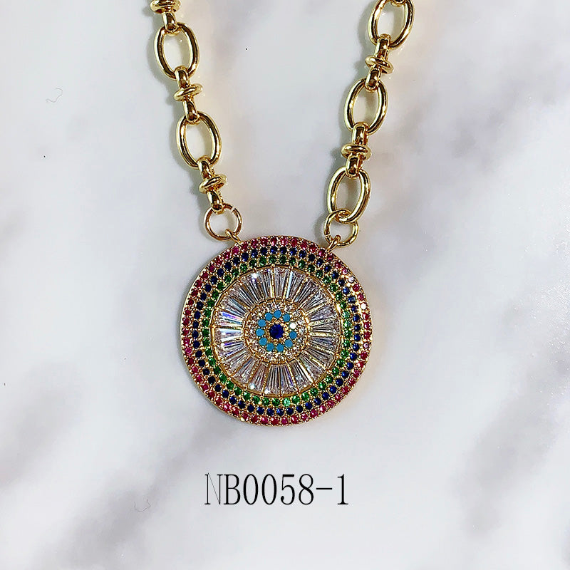 Stainless Steel Evil Eyes Pendant Zircon Necklace NB0058