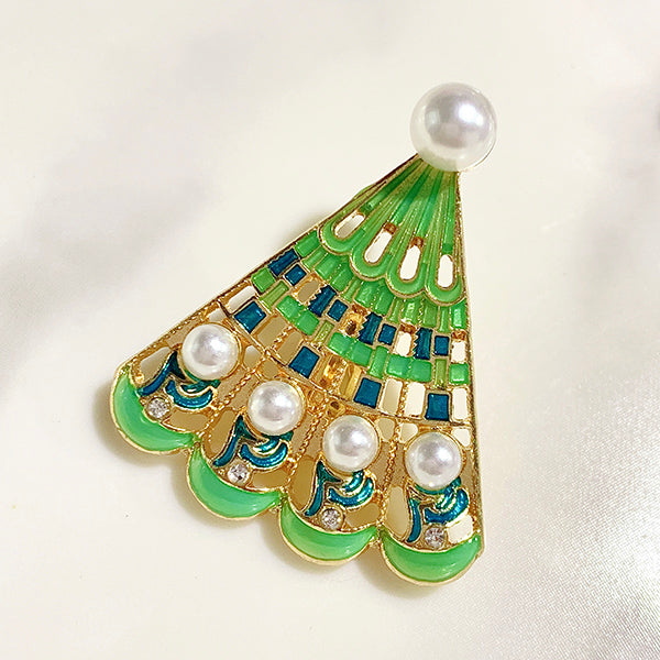 Stainless Steel Imitation Pearl Fan Enamel Ear Clip EC0021