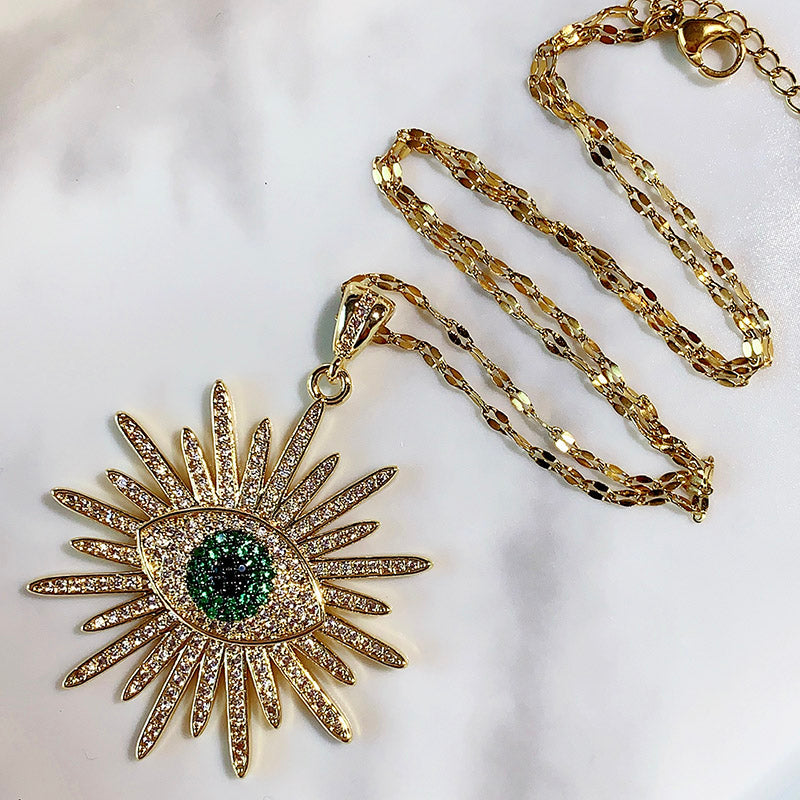 Stainless Steel Evil Eyes Pendant Zircon Necklace NB0057