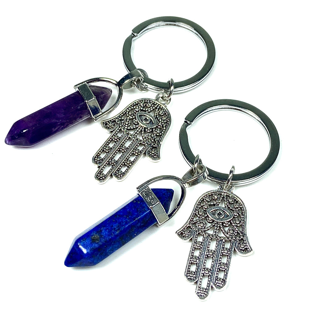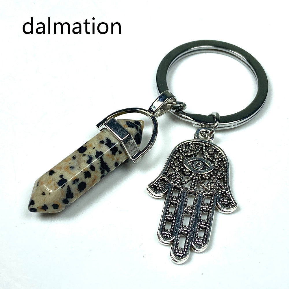 Different Materials Crystal Keyring (Yellow Tiger Eye & Clear Quartz & Amethyst & Green Aventuurine & Dalmation)