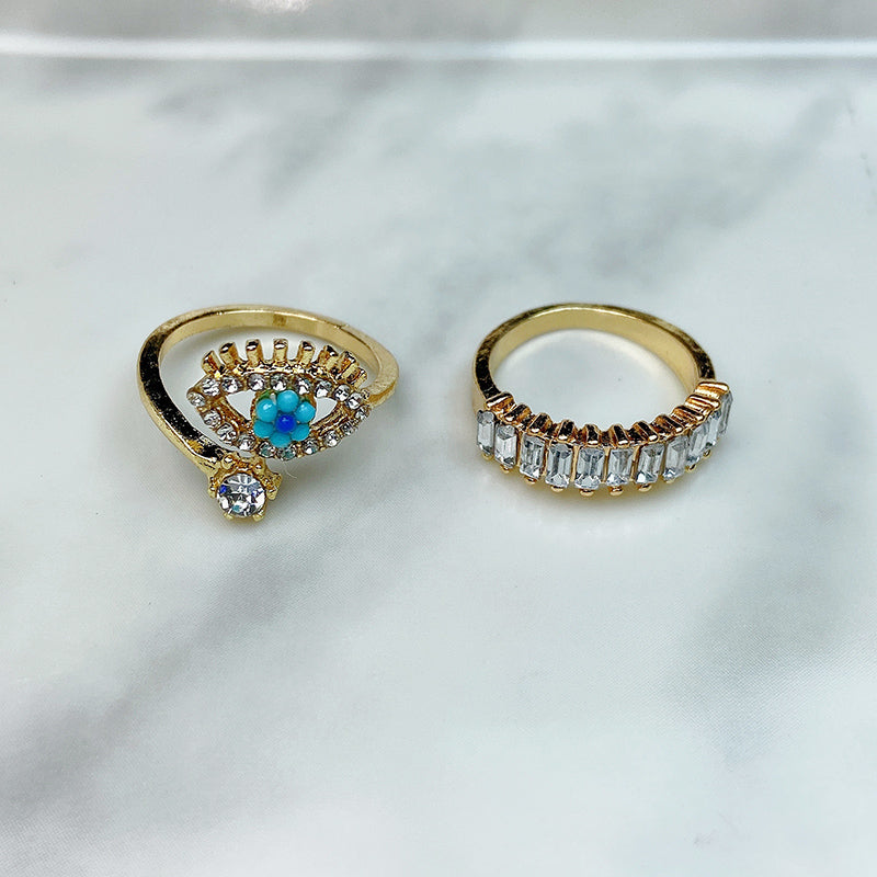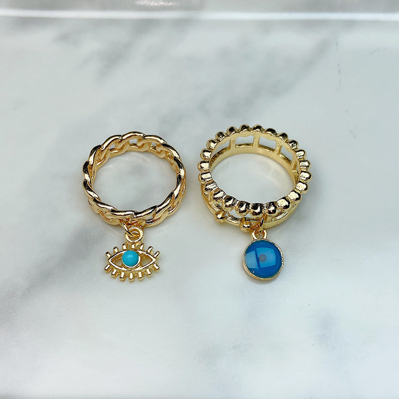 Stainless Steel Evil Eyes Blue Enamel Zircon Series Ring (a set 4 pcs) RE0012