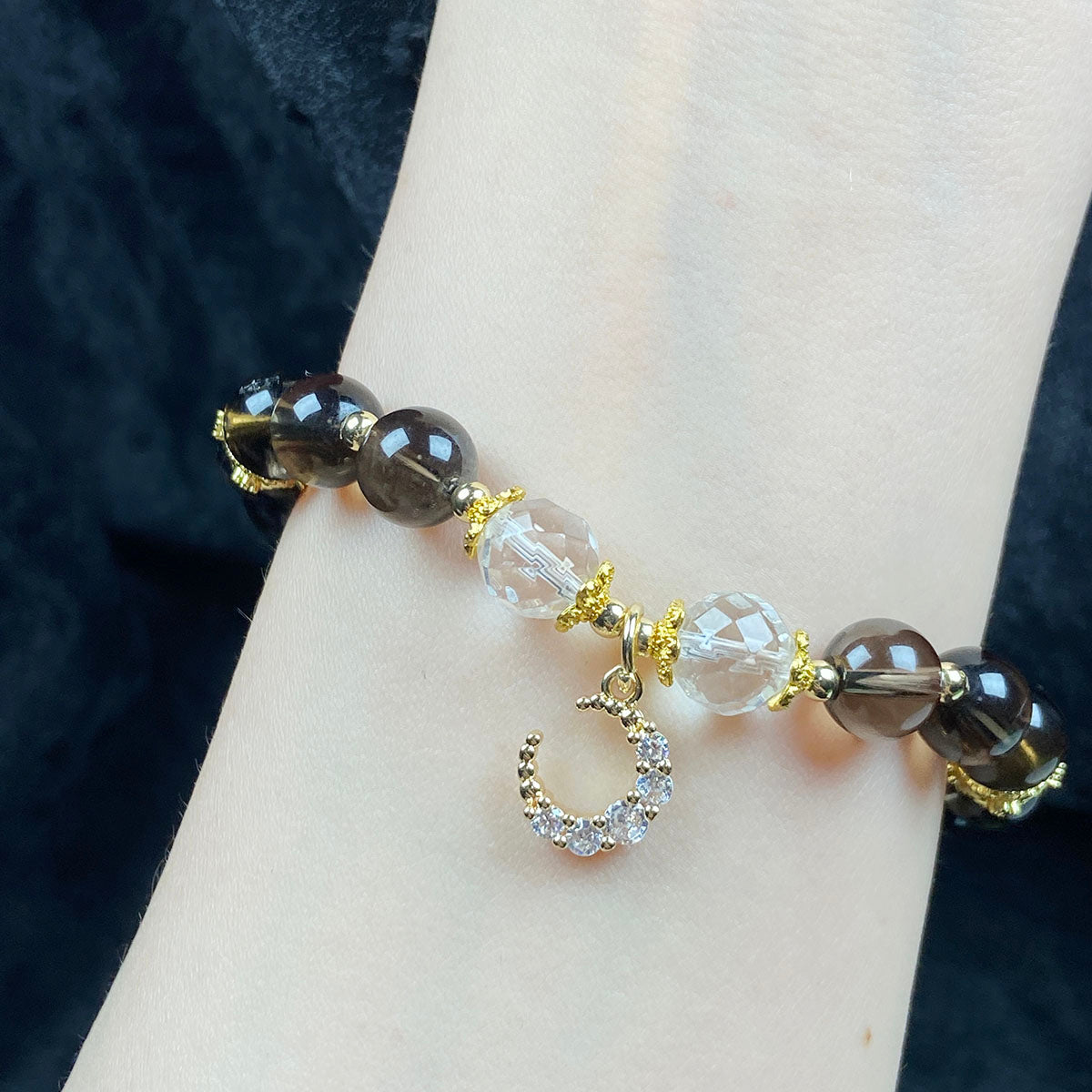 8MM Smoky Quartz Bead With Moon Accessory Design Bracelet Girls Women Jewelry
