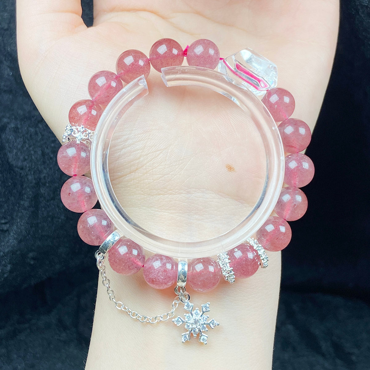 8MM Strawberry Quartz With Snowflake Pendant Bracelet For Women Sweet Jewelry