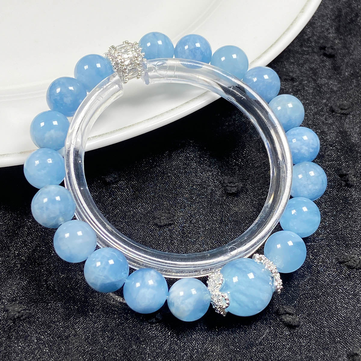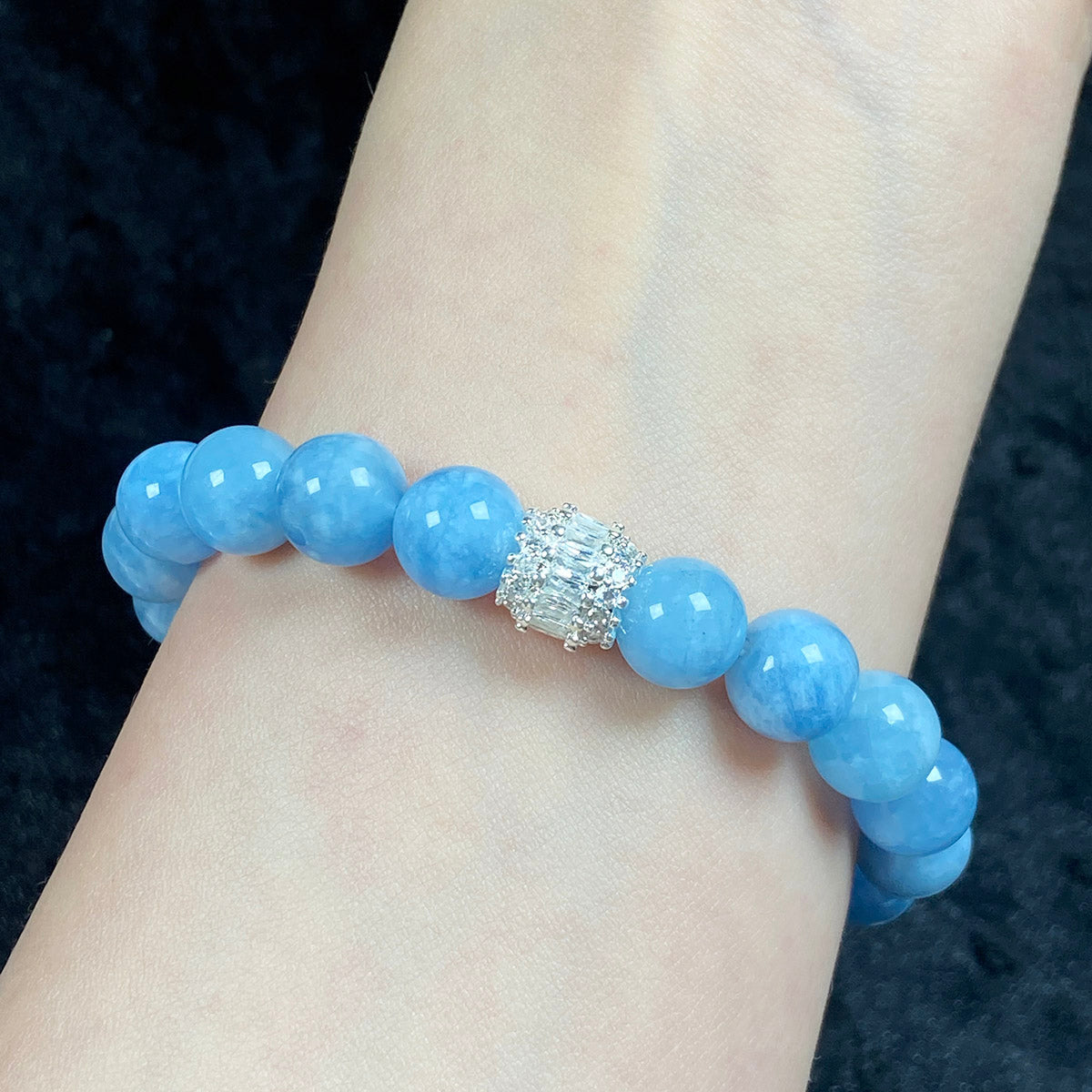 9MM Aquamarines Bracelets Single Circle Crystal Gemstone Romantic Casual Yoga Jewelry