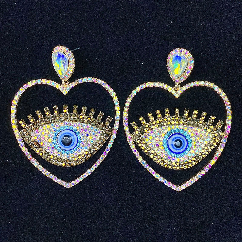 Alloy Evil Eyes Heart Color Zircon Earrings ED0019