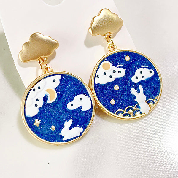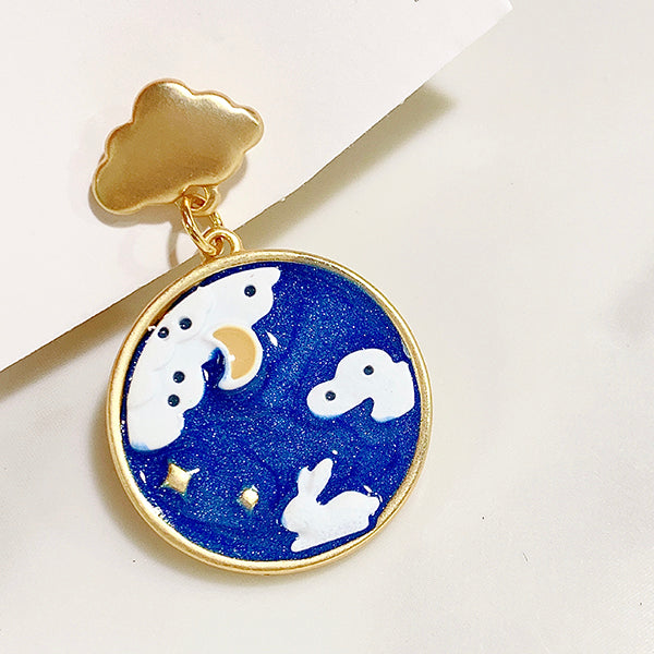 Alloy Moon Rabbit Cloud Enamel Zircon Asymmetry 925 Silver Earring EC0027