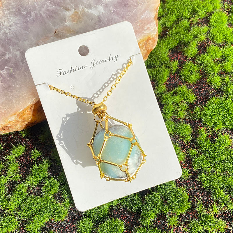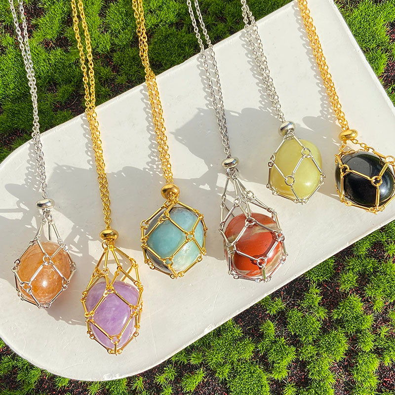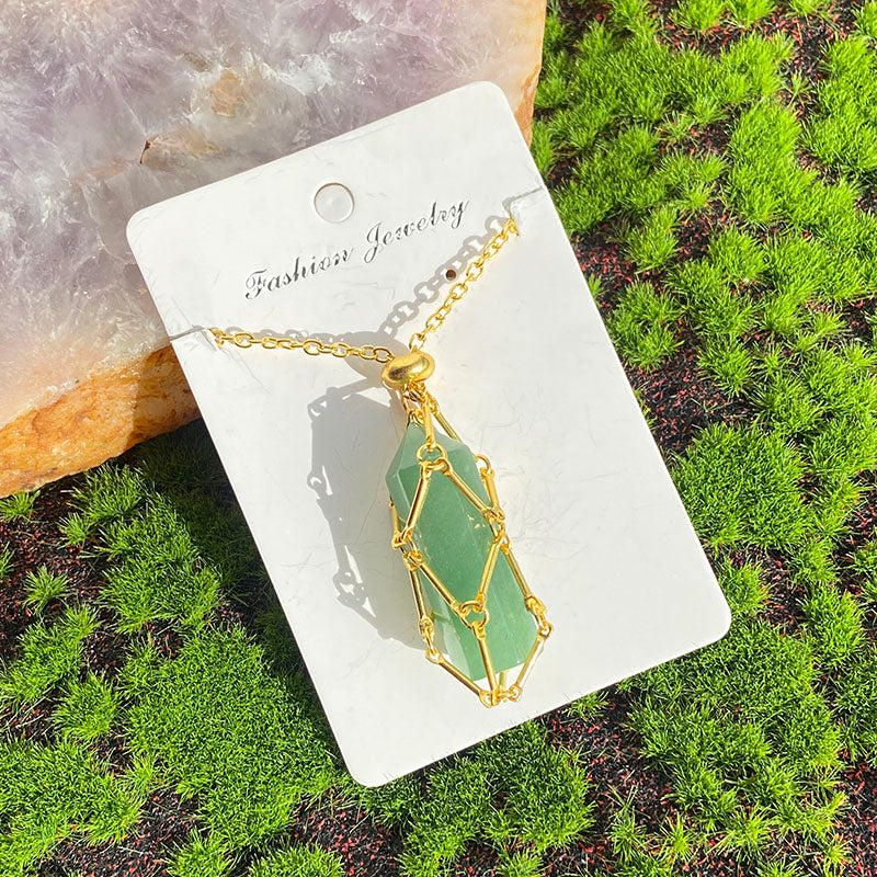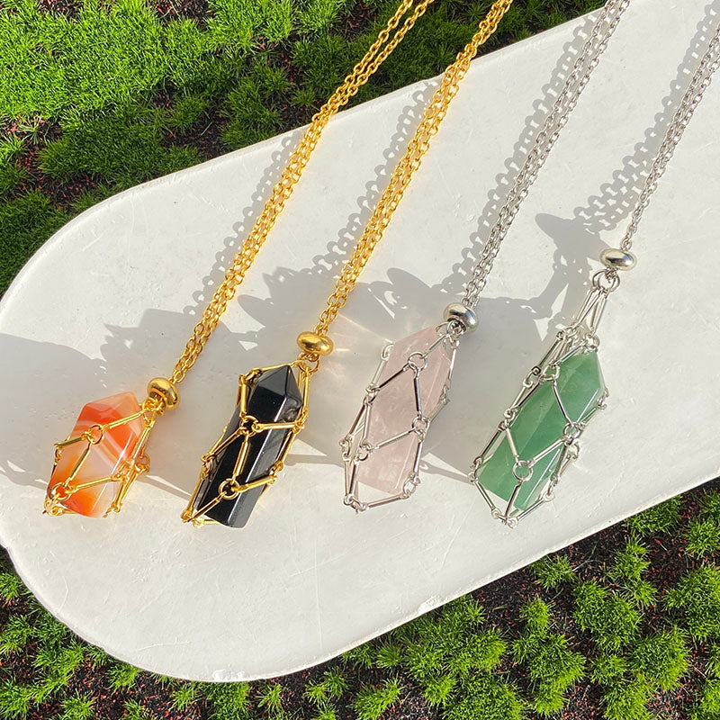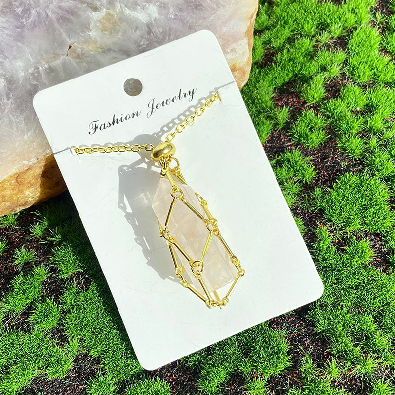 Crystal Cage Necklace Holder Net Metal Chain Stone Collecting Holder Adjustable Pendant Jewelry