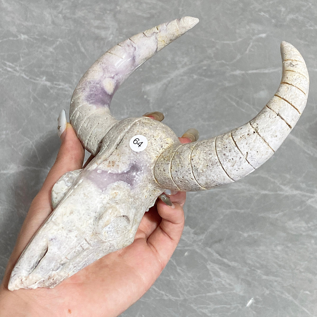 Crystals Pink Amethyst Sheepshead Skull Carved Ornament Healing Home Decoration Mineral