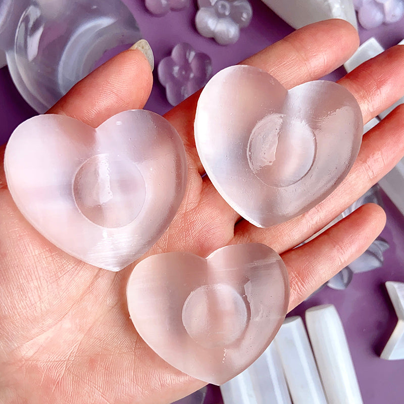 Different Selenite Carvings (Flower/Angel With Heart/Hello Kitty/Tree Fairy/Moon with Star)
