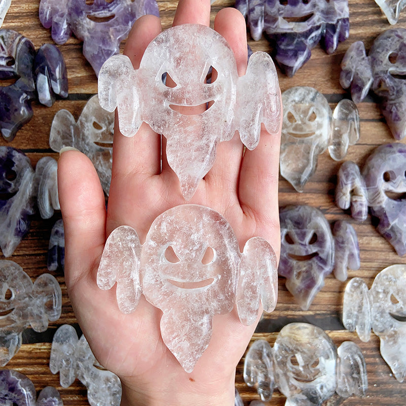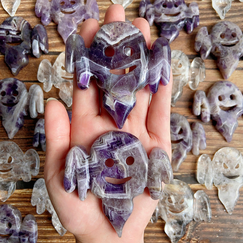 Dream Amethyst & Clear Quartz Halloween Ghost Carvings