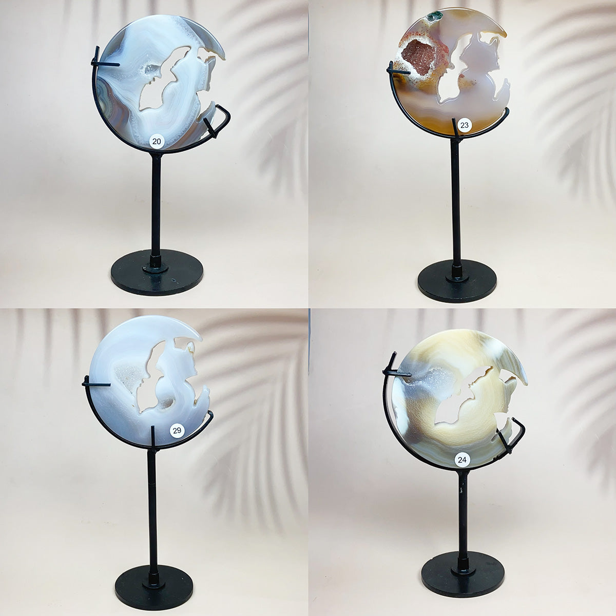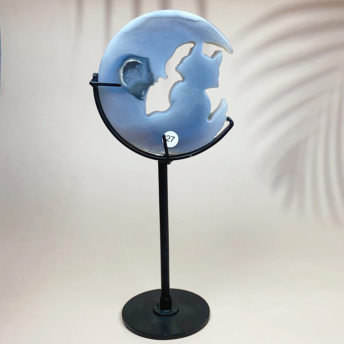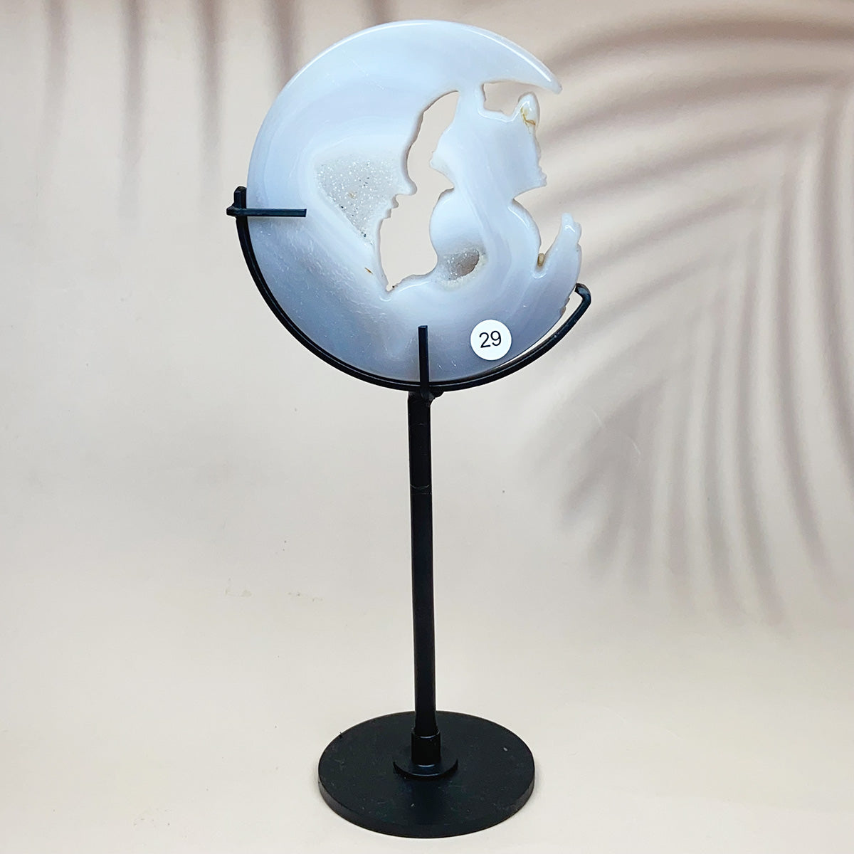 Crystal Carving Druzy Agate Moon Face With Cat
