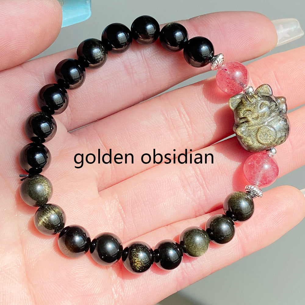Golden Obsidain Maneki Neko Carving Style Crystal Bracelet Jewellry