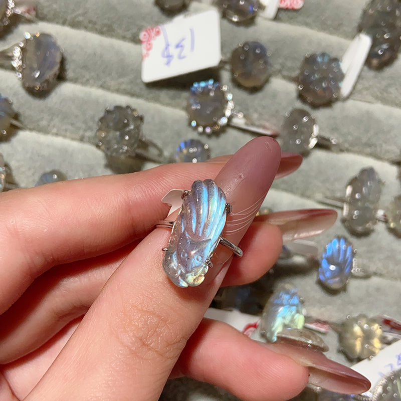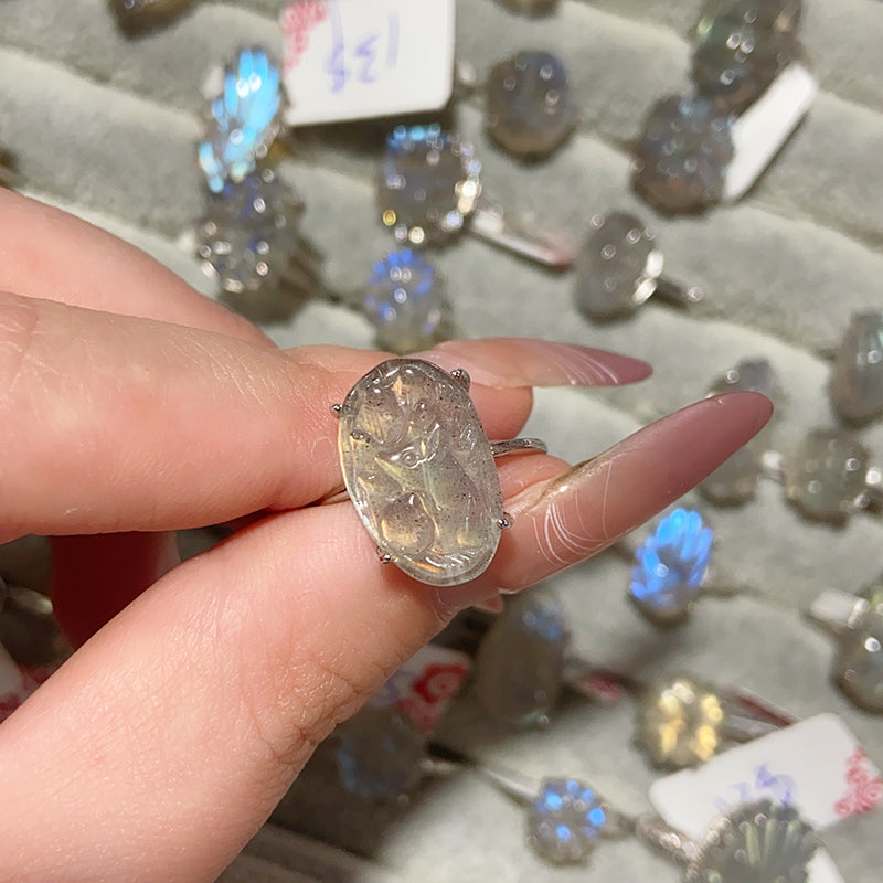 Labradorite Nine Tailed Fox Adjustable Size S925 Rings – komocrystal