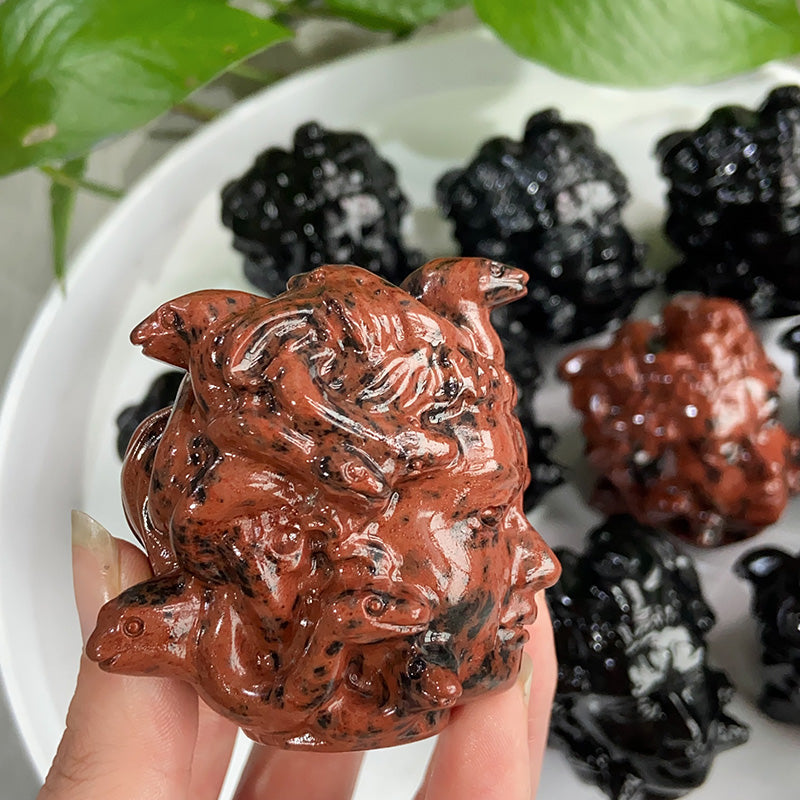 Mahogany Obsidian & Obsidian Medusa Carvings