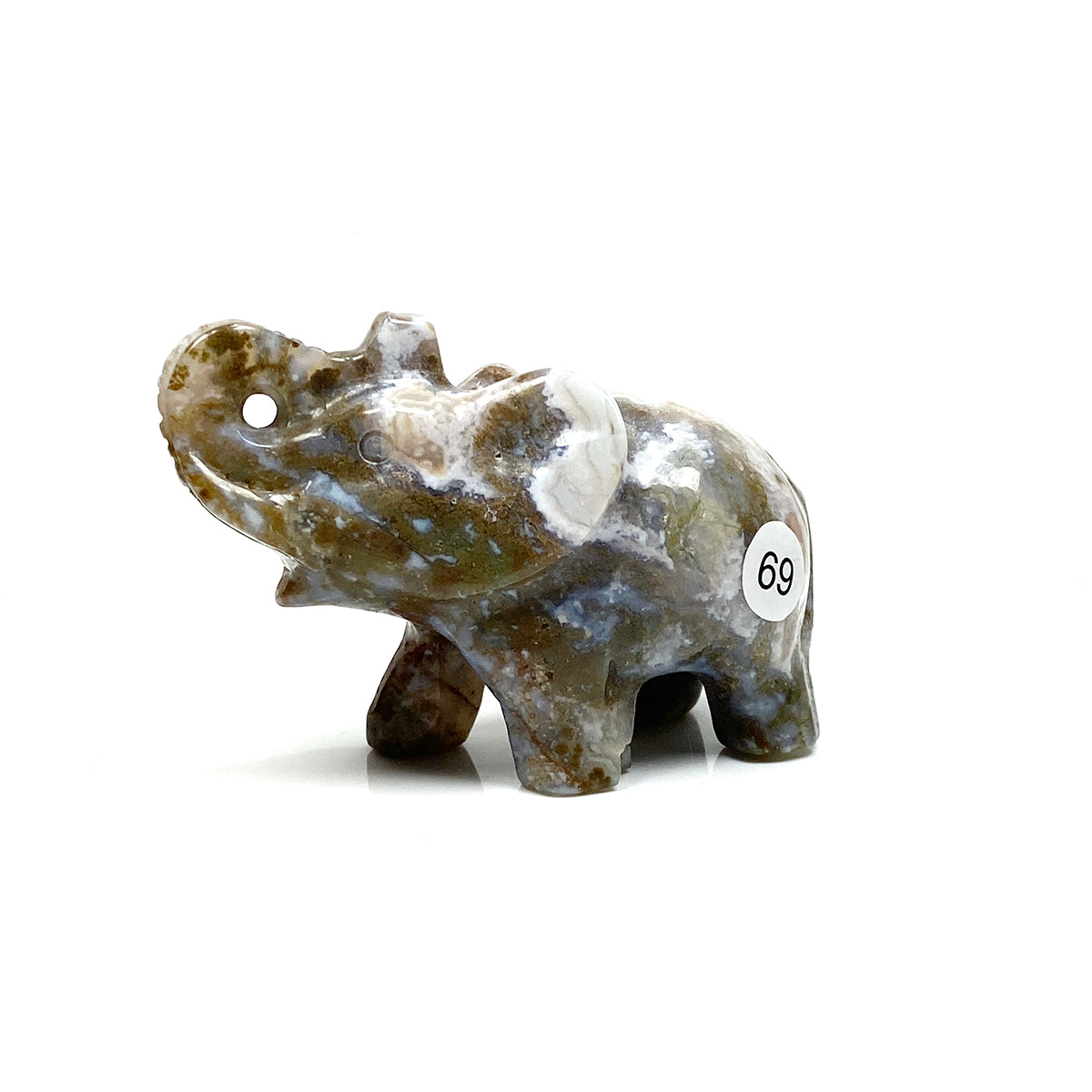 Crystal Carving Animal Moss Agate Elephant Sculpture