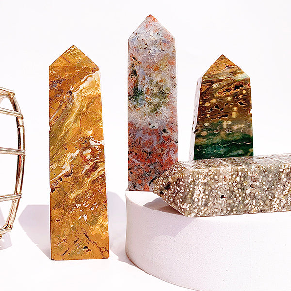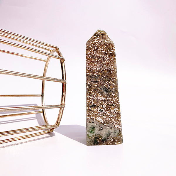 Natural Unicuspid Ocean Jasper Tower/Point Hand Crafted Decoration