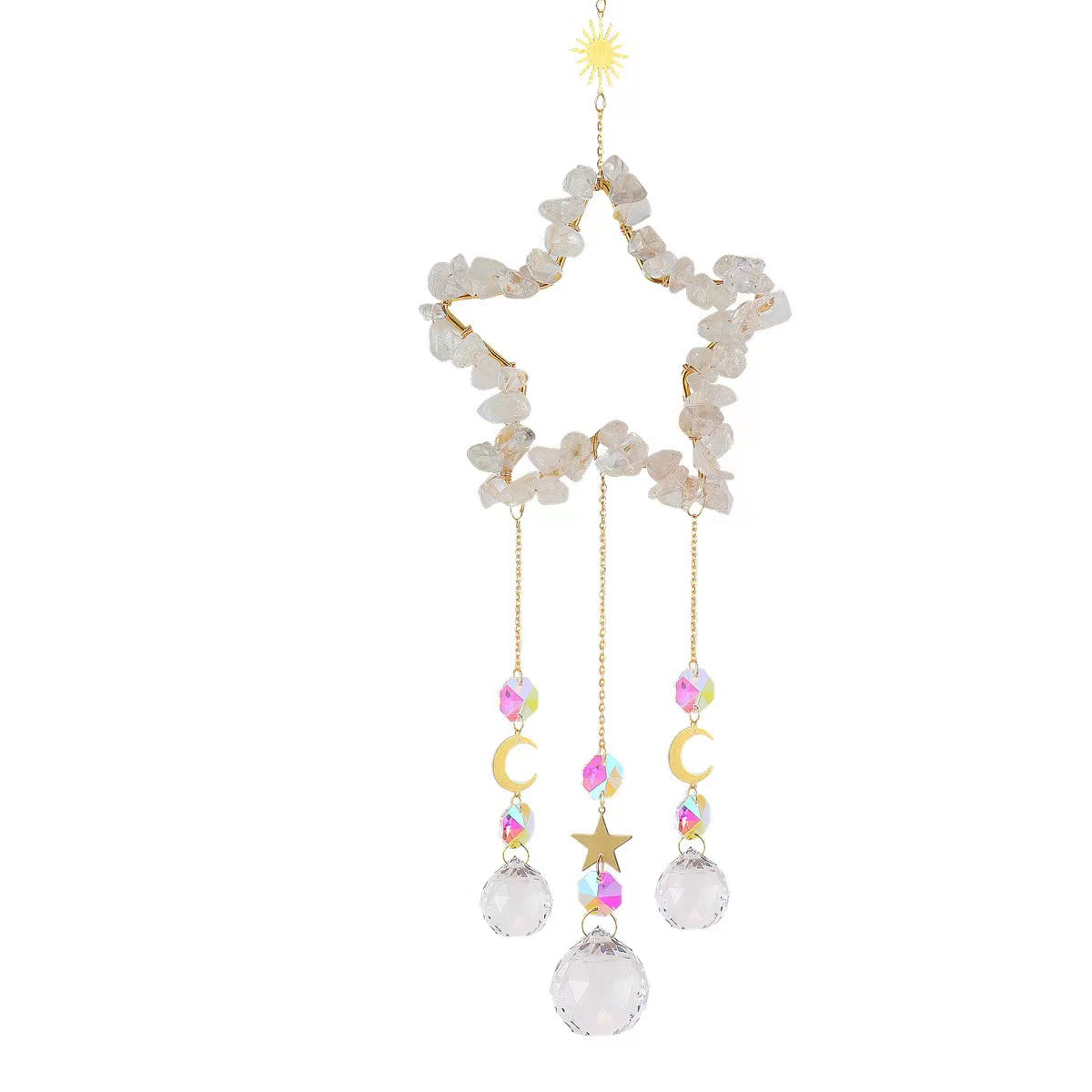 Nature Crystal Chip Pentagram Sun Catcher/Wind Bell
