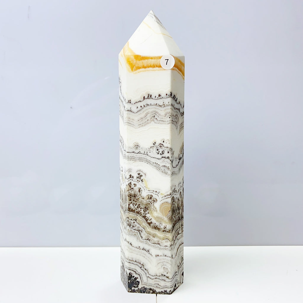 Plum Blossom Orange Calcite Tower Healing Energy Obelisk Reiki Quartz Home Decoration