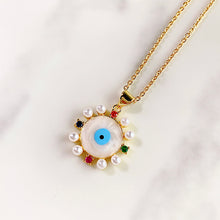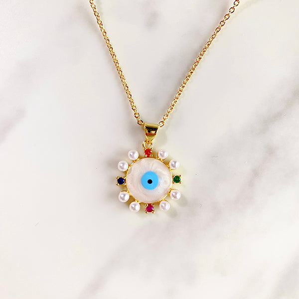 Stainless Steel Evil Eyes Imitation Pearl Pendant Shell Necklace NB004 – komocrystal