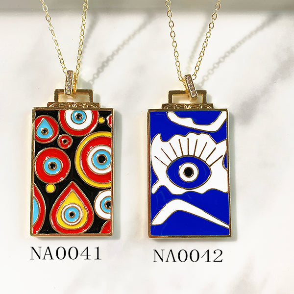 Stainless Steel Evil Eyes Pendant Enamel Necklace NA0031-42