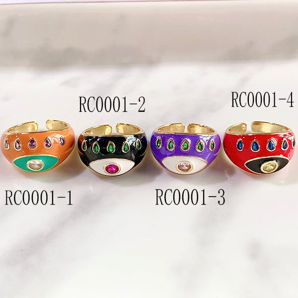 Stainless Steel Evil Eyes Zircon Enamel Can Adjust Ring RC0001