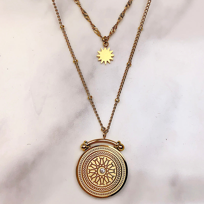Stainless Steel Zircon Star Pendant Double Necklace NB0065